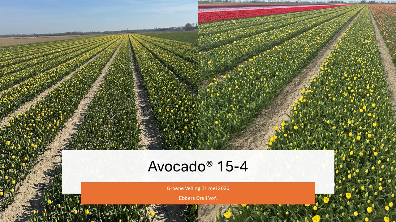 | Hobaho & HB Veilen organiseren 21 mei 2026 een Groene Veiling voor Fa. van Meer uit Creil. De soorten zijn: Avocado ±110 are 4/11 geplant (Urkerweg 22) Avocado afbroei ±30 are (Neushoornweg 10) Pink Majesty ± 44 are onder 4/11 geplant (Neushoornweg 10) Klik hier voor een uitgebreide map met tuinadressen Aansluitend de veiling van Ebbers Creil Vof. Robér Dol – 06 5108 7280 Kees Hopman – 06 1502 0994 Marcel Noppen – 06 5337 7982 |