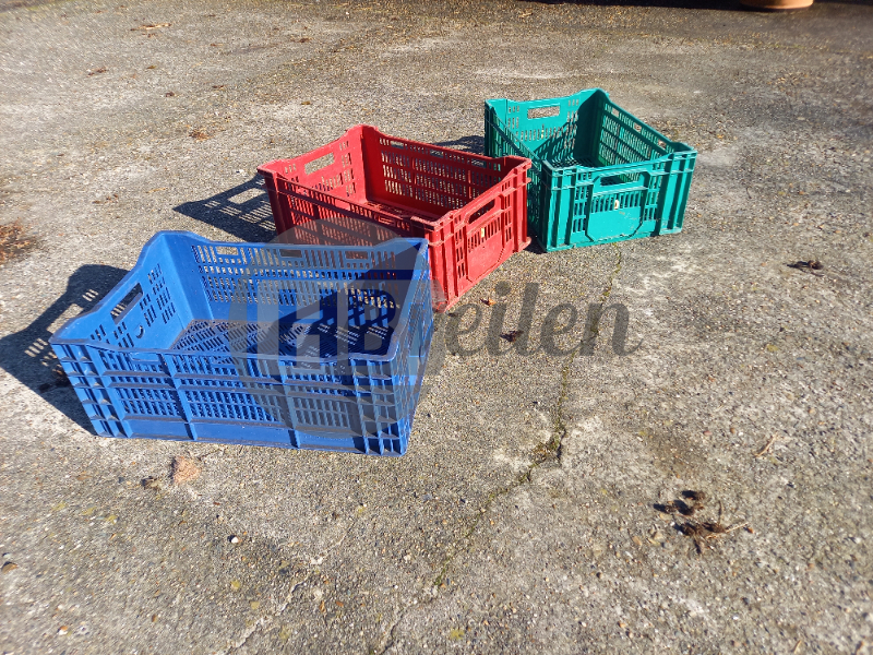 69 rode-, 32 grijze-, 18 groene- en 4 blauwe kratten