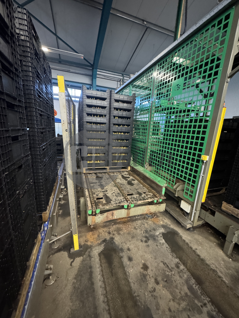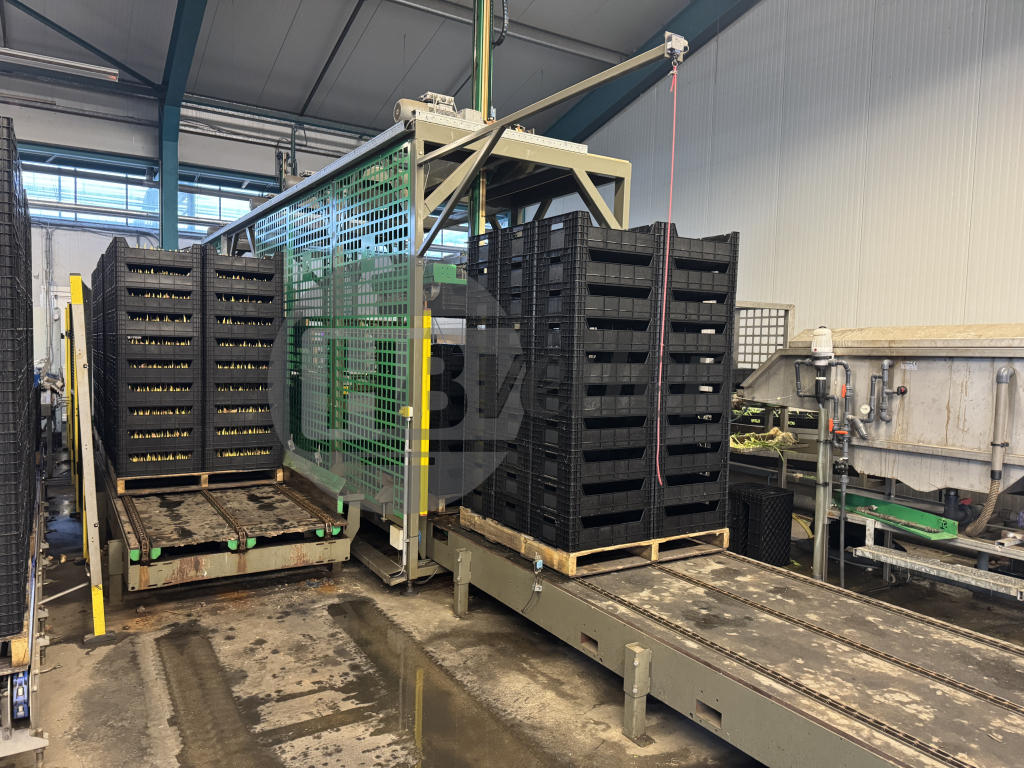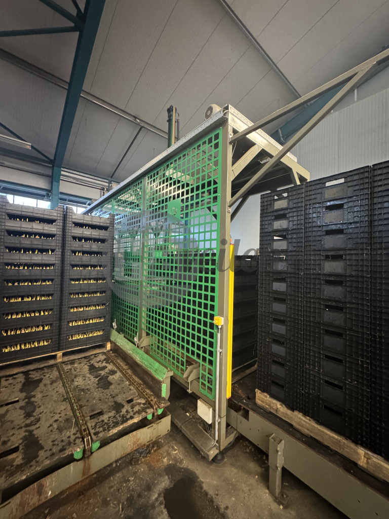 Stapelt lege pallets op/af